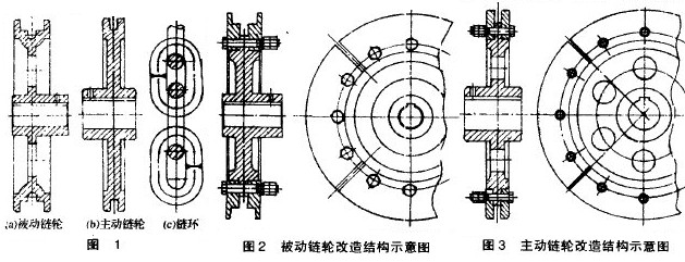 老式鏈輪均為整體式,因此每次檢修更換必須將軸承座、軸、鏈輪等全部拆開,大大浪費人力和財力。
